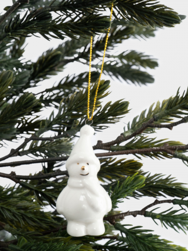 Игрушка елочная, 7 см, фарфор P, бело-золотистая, Снеговик, New year