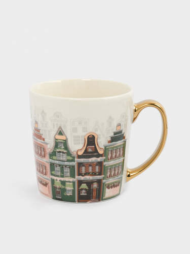 Кружка, 500 мл, фарфор N, бело-золотистая, Дома, Town