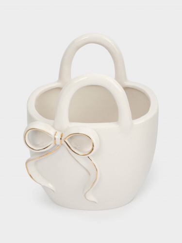 Ваза для цветов, 16 см, декоративная, фарфор P, бело-золотистая, Сумка с бантом, Townlet