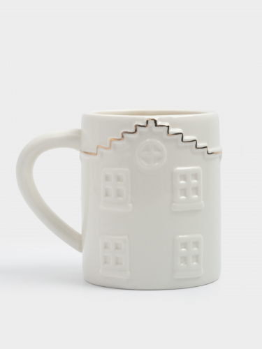 Кружка, 580 мл, фарфор P, бело-золотистая, Дом с венком, Townlet