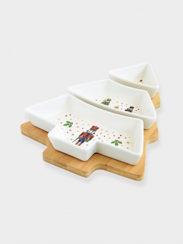 Набор для закуски, 25,5*21 см, 3 блюда на подставке, Ёлочка, Щелкунчик