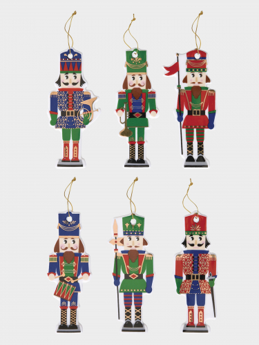 Набор ёлочных украшений, 6 пр, 9x4 см, фарфор, Щелкунчик