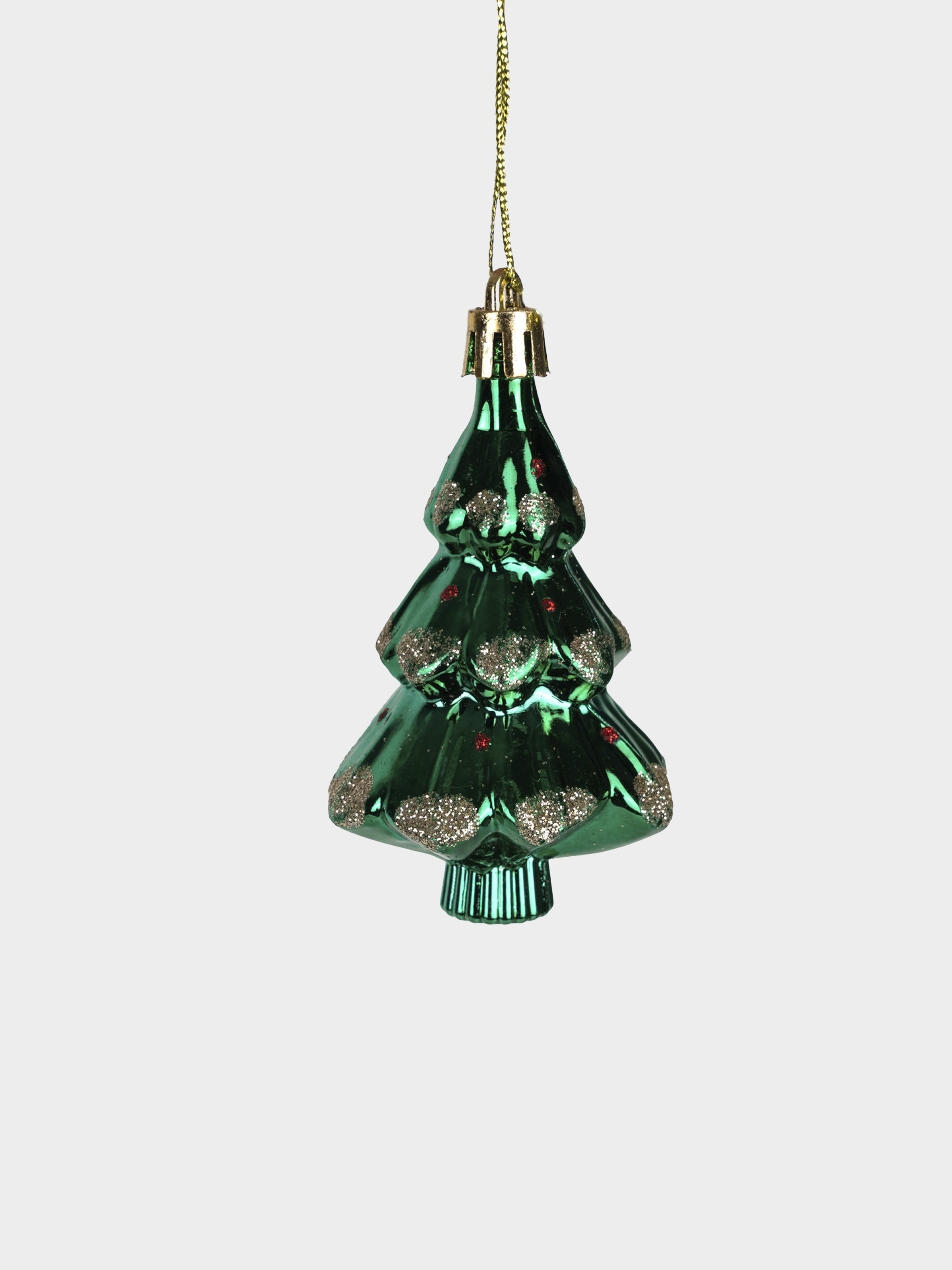 Набор елочных игрушек, 7 см, 2 шт, пластик, зеленый/красный, Елка и трость, New year