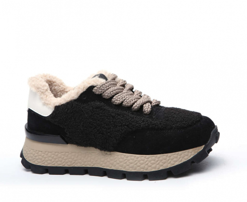 Кроссовки жен черн кож-велюр 3980 ру с 36 по 40 ЗИМА на нат шерсти