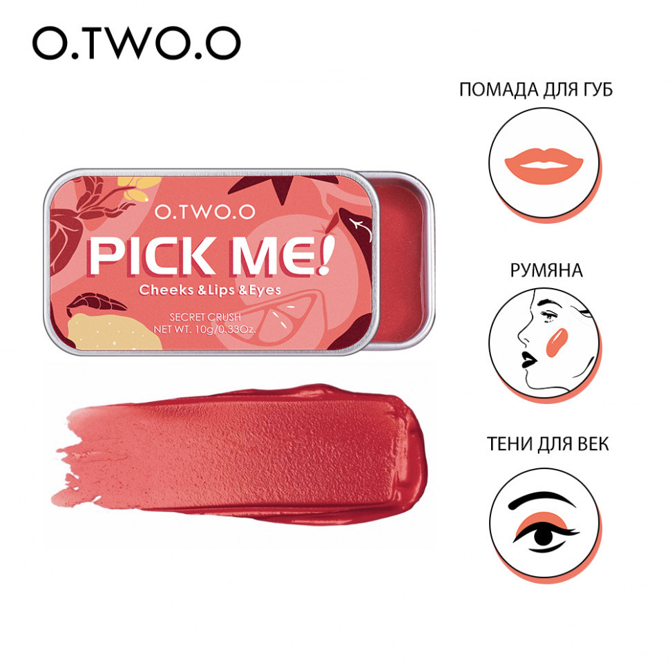 Матовый крем 3 в 1 (румяна, тени для век, помада для губ) O.TWO.O Pick Me 10г #9139 (№07 Красный)