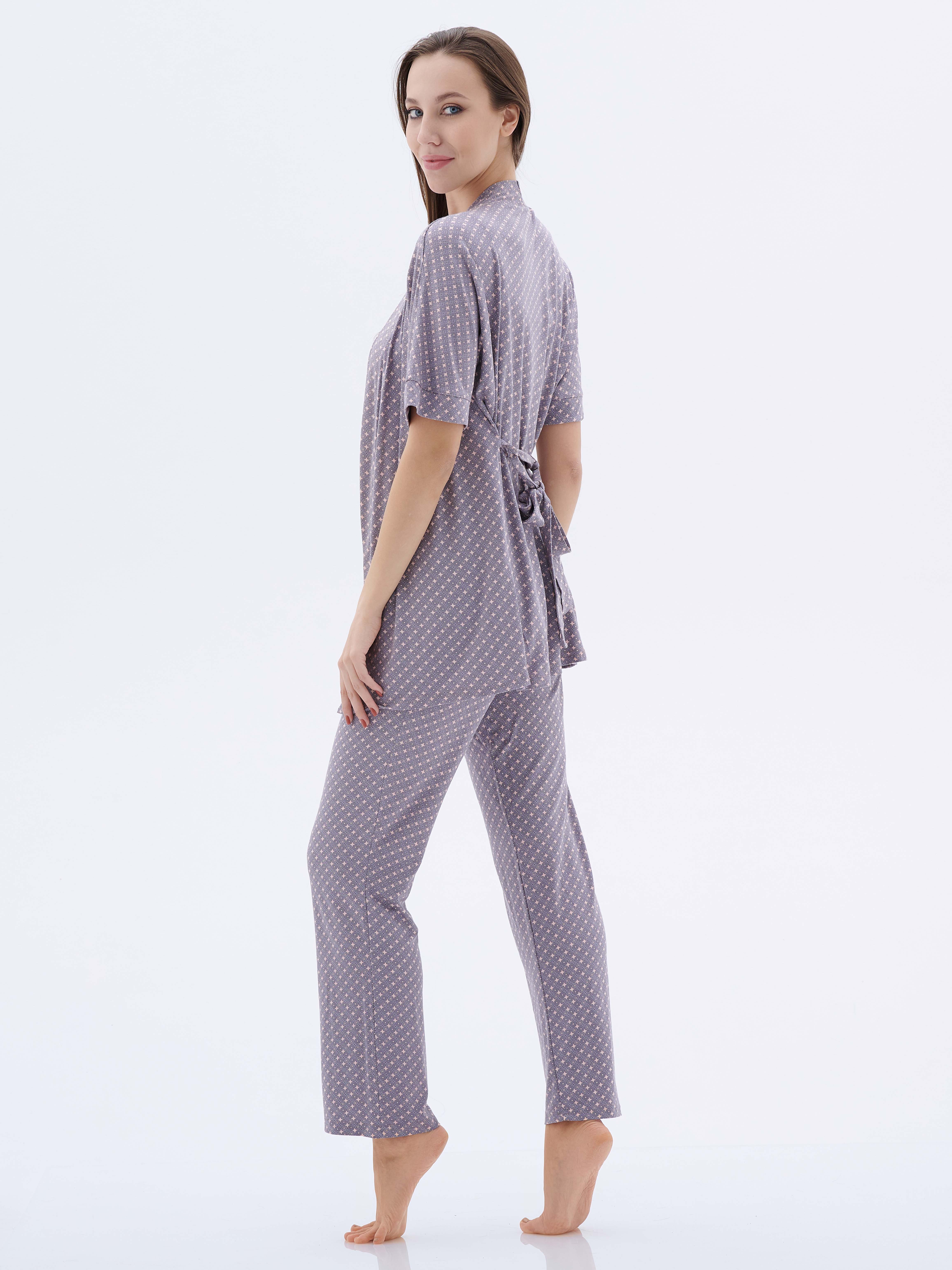 Комплект с халатом "МИШЕЛЬ": брюки, топ, халат (серый №3)