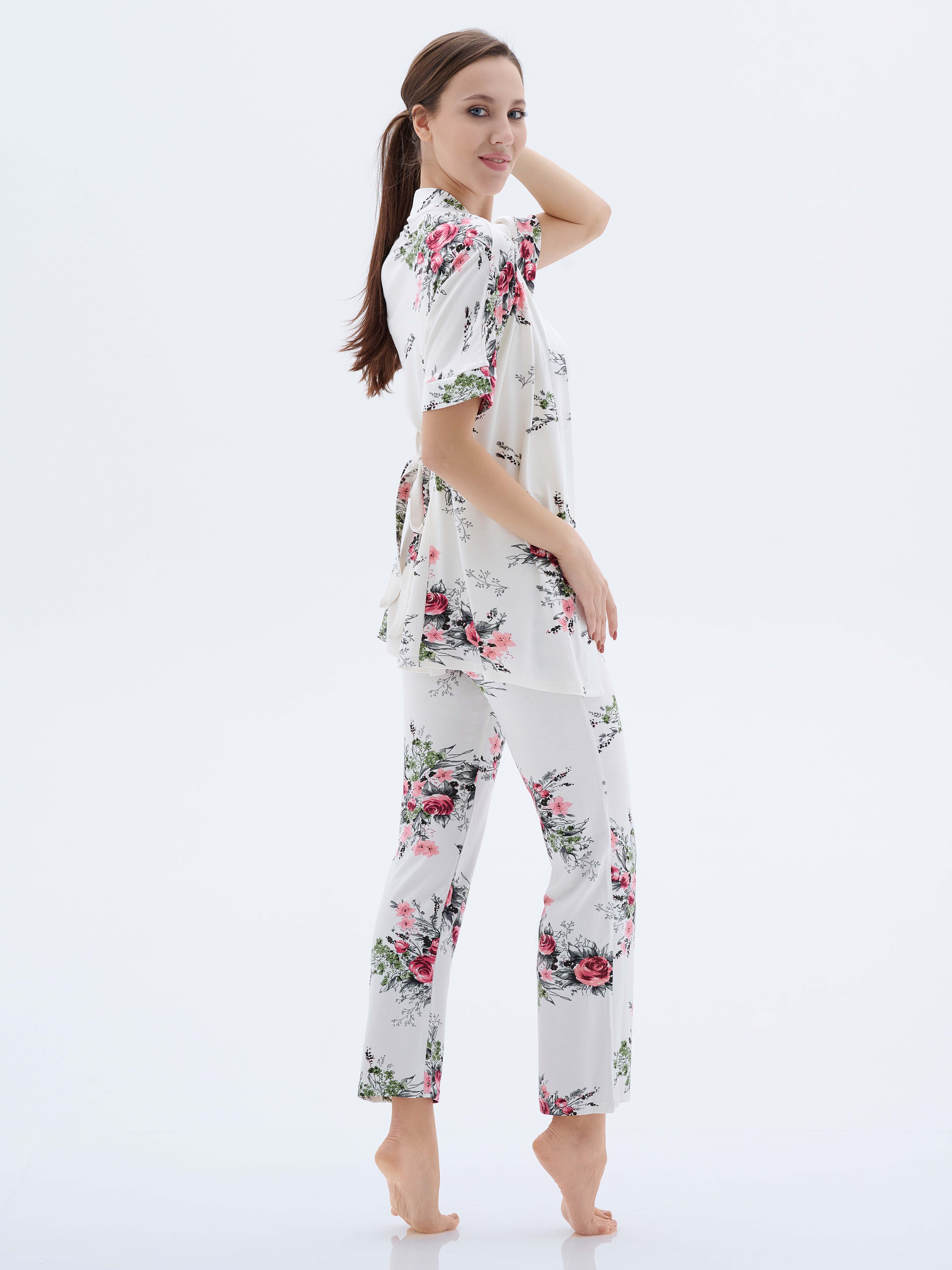 Комплект с халатом "МИШЕЛЬ": брюки, топ, халат (молоко №18)