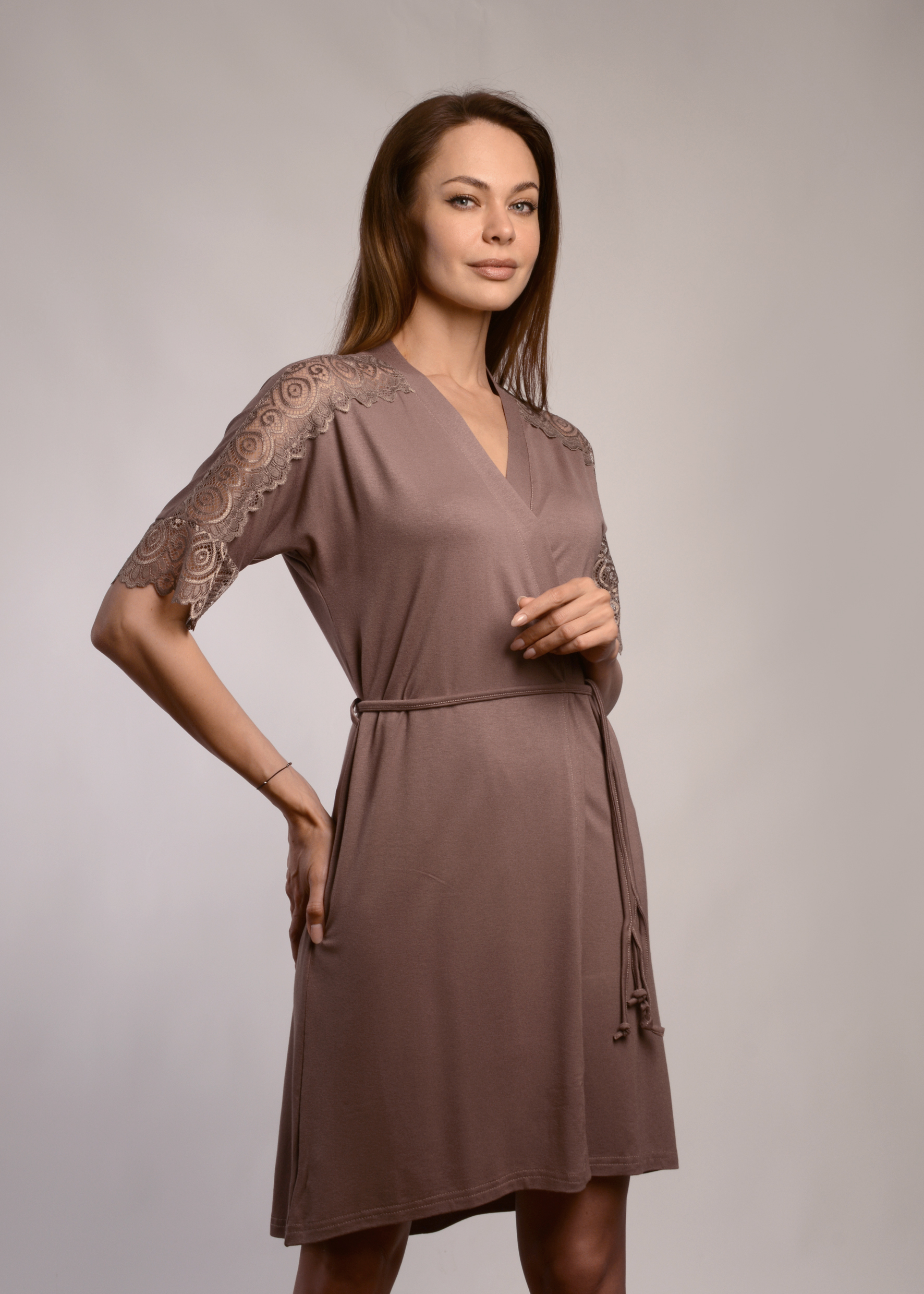Комплект с халатом "КОФЕ" халат + сорочка (голубой №10)