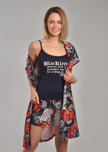Комплект с халатом "БИАТРИС" халат + шорты + топ (темно синий)