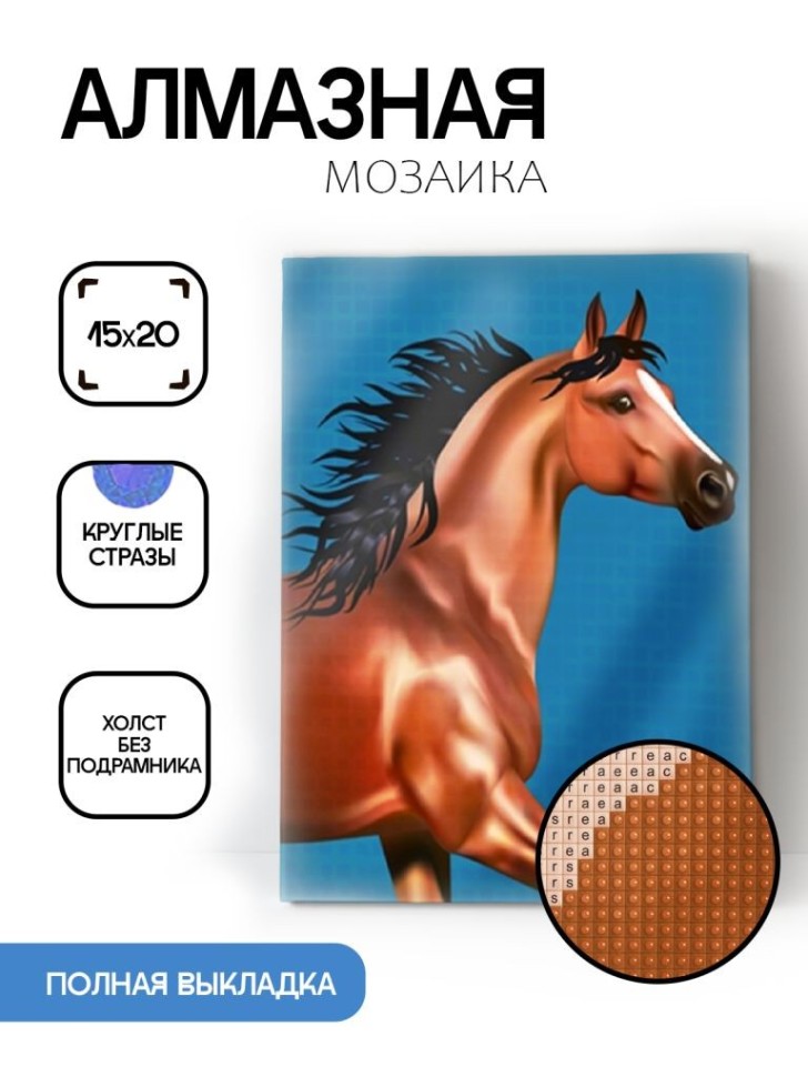 Алмазная мозаика без подрамника "Лошадь", 15х20 см