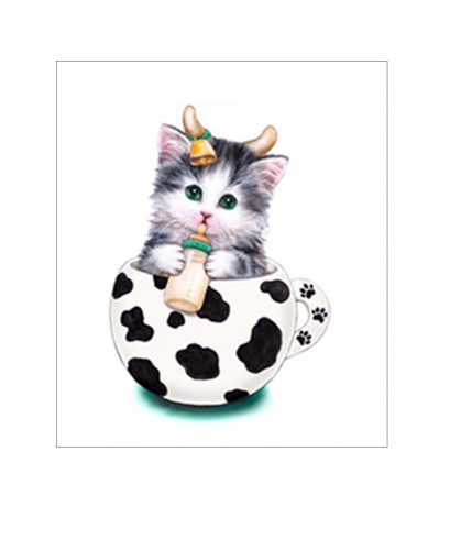 Алмазная мозаика картина стразами Котёнок в пятнистой кружке, 15х20 см