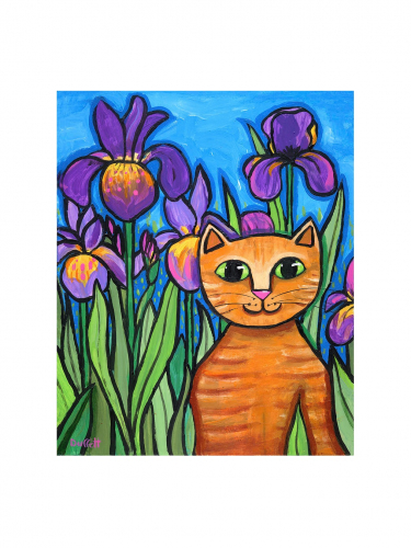 Алмазная мозаика картина стразами Кот на фоне ирисов, 15х20 см