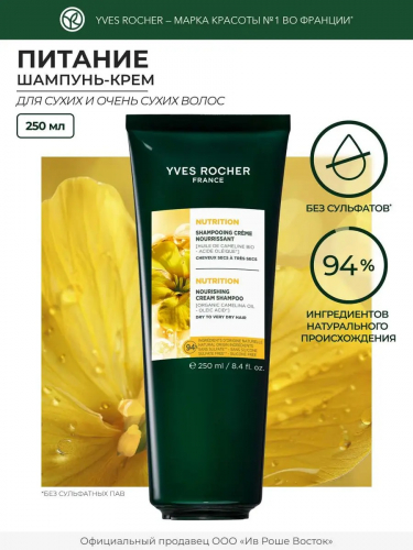 Шампунь-Крем ПИТАНИЕ c Маслом Рыжика Посевного - Для сухих и очень сухих волос, 250 мл Код 34812