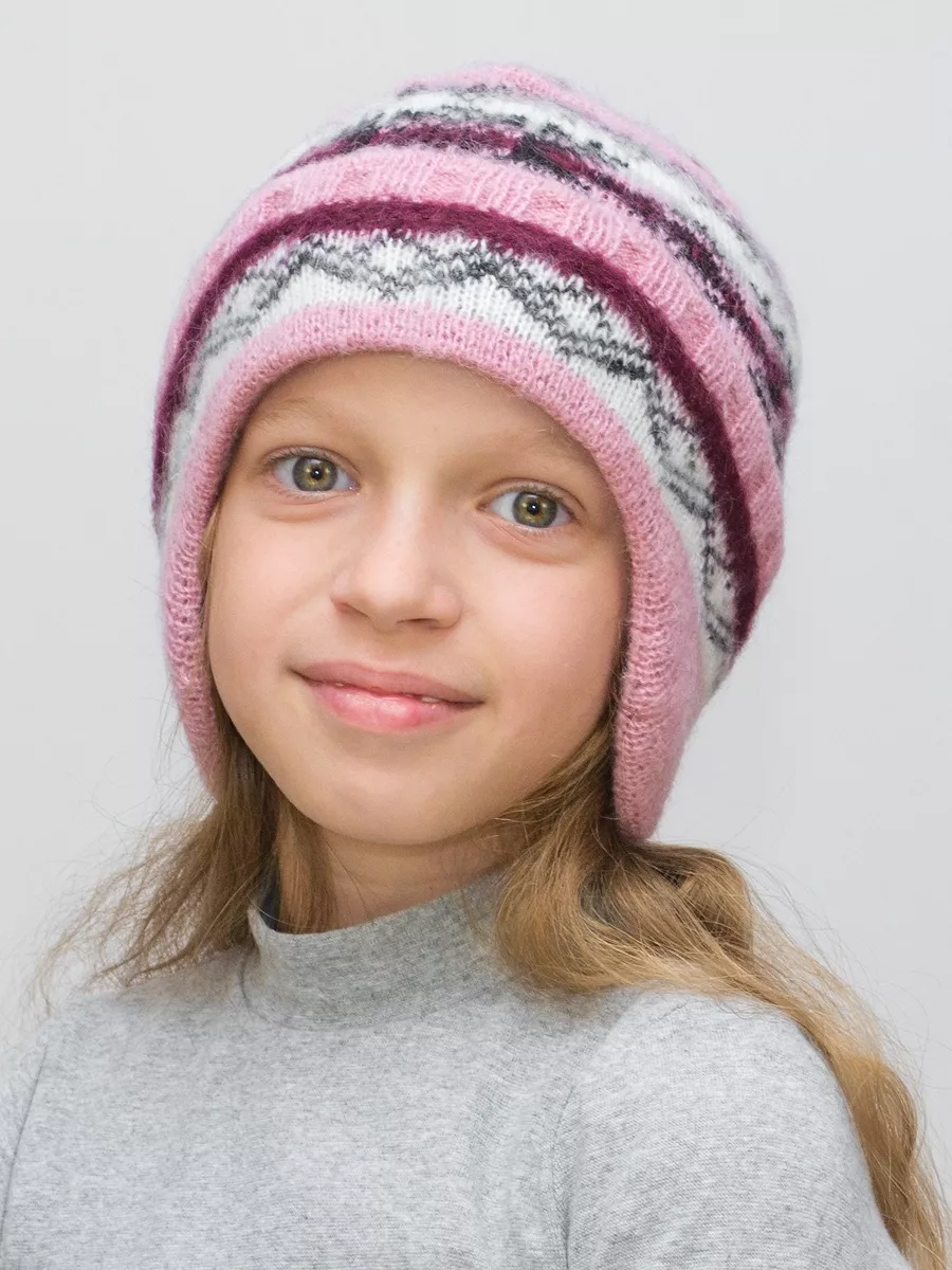 Шапка зимняя для девочки Мохер (Цвет розовый), размер 54-56, шерсть 70%
