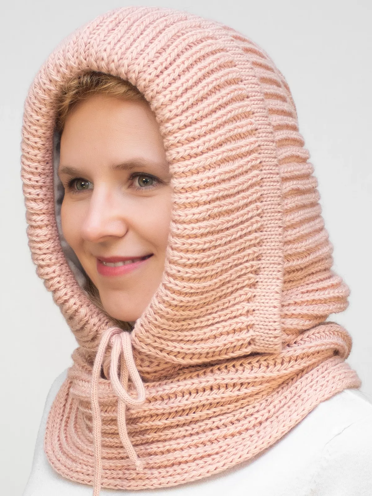 Капор снуд женский Маргарита (Цвет розово-сиреневый), Один размер, шерсть 30%