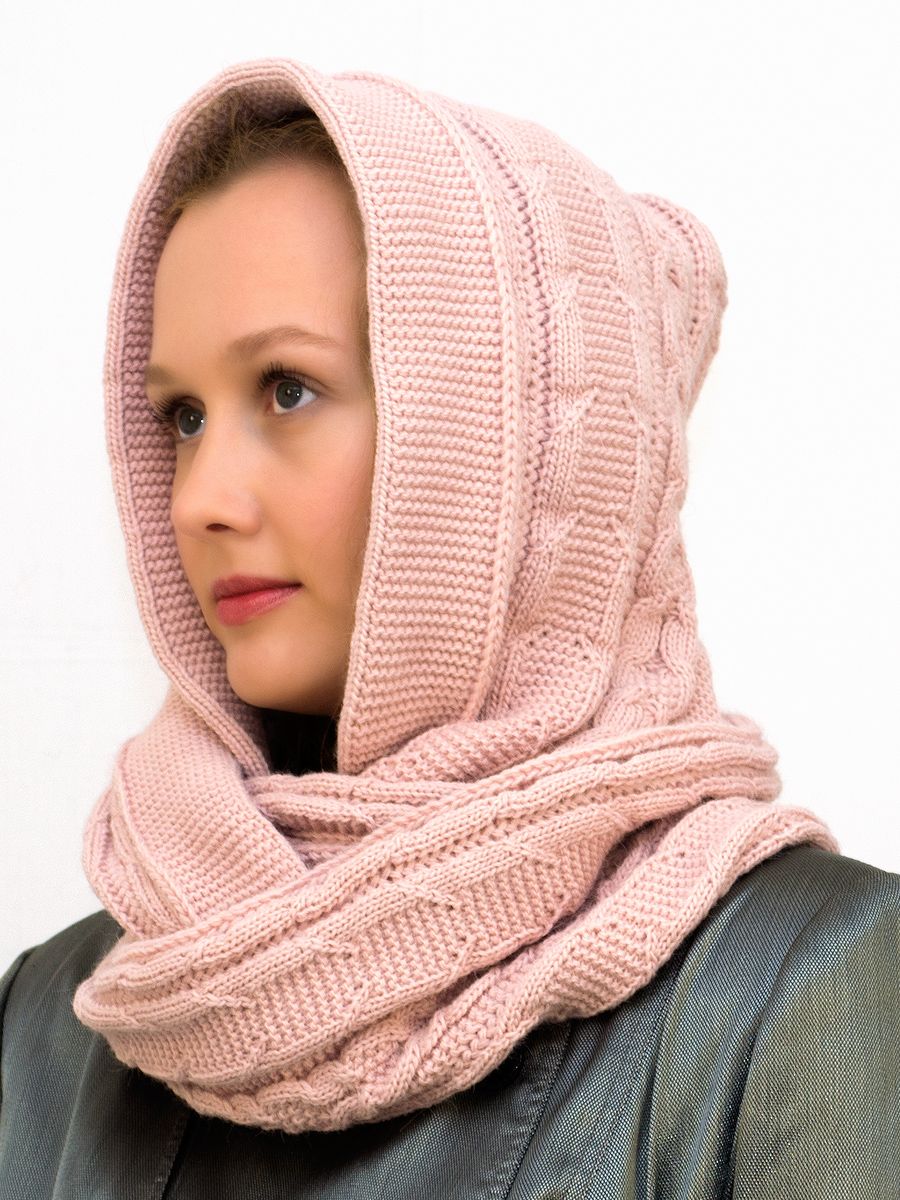 Капор снуд женский Маргарита (Цвет пудровый), Один размер, шерсть 30%