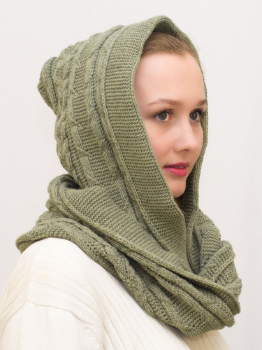 Капор снуд женский Маргарита (Цвет гороховый), Один размер, шерсть 30%
