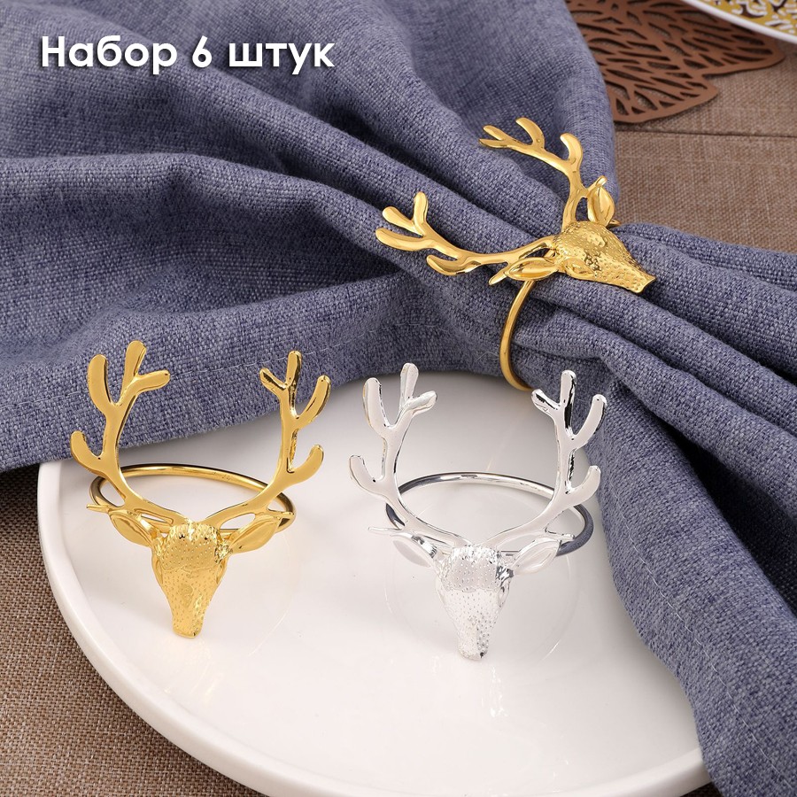 Кольца для салфеток "Голова Оленя" металл, Набор 6 штук.