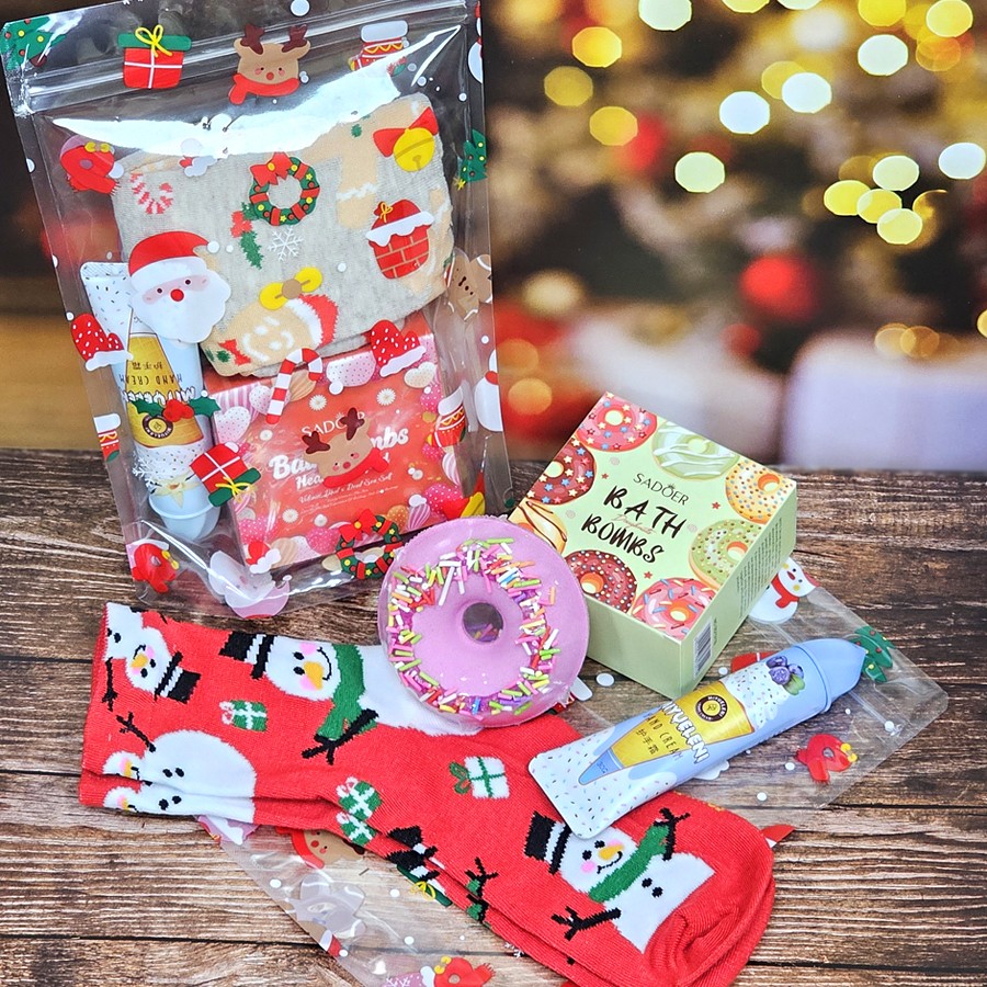 Набор подарочный в zip-пакете "Новогодний" (Бомбочка + Носочки + Крем для рук)