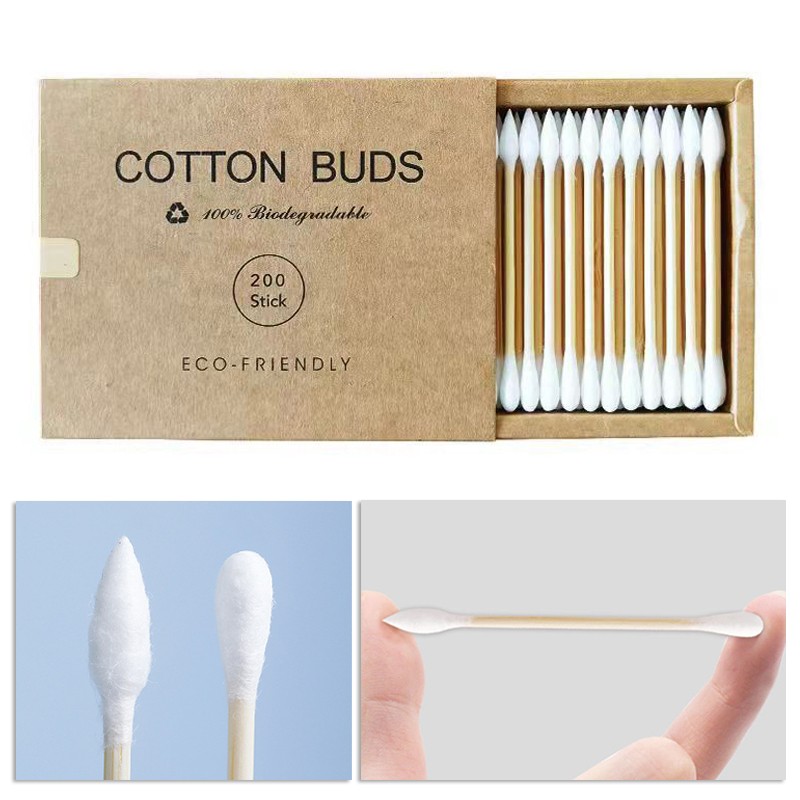 Бамбуковые ватные палочки с ЗАОСТРЕННЫМ наконечником, 200 шт.