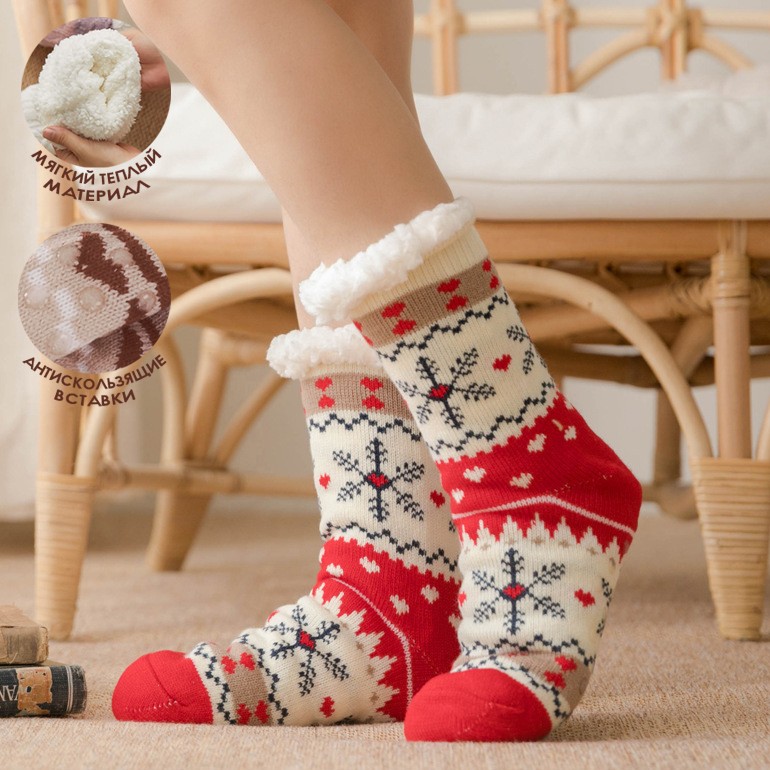 Утепленные домашние носки с силиконовыми вставками (Размер 36-41) СНЕЖИНКИ