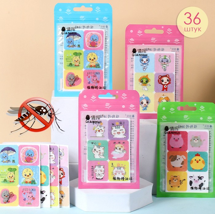 Наклейки от комаров и мошек с рисунками, набор 36 шт.