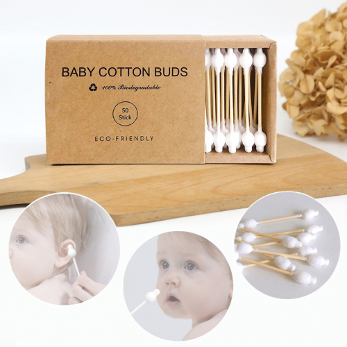 Бамбуковые ватные палочки детские с ОГРАНИЧИТЕЛЯМИ, 50 шт.