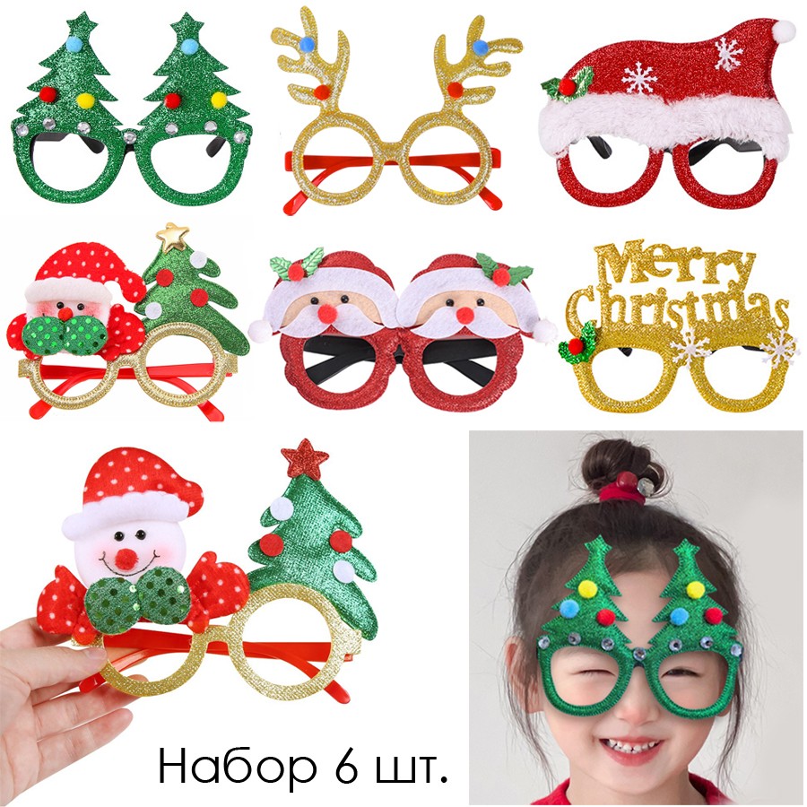 Очки новогодние карнавальные Набор 6 штук. Размер универсальный