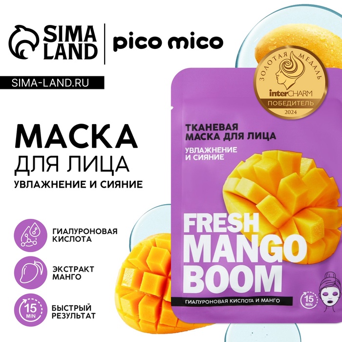 Маска для лица тканевая с гиалуроновой кислотой Fresh mango boom, увлажнение и сияние, PICO MICO