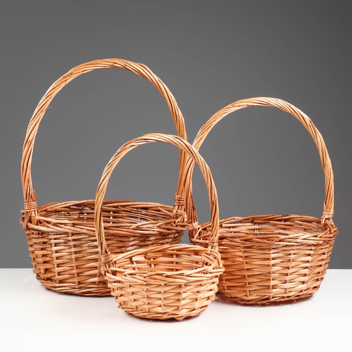 Набор корзин плетёных, 3 шт., 30×22/33 см, 26×12/28 см, 20×10/23 см, ива