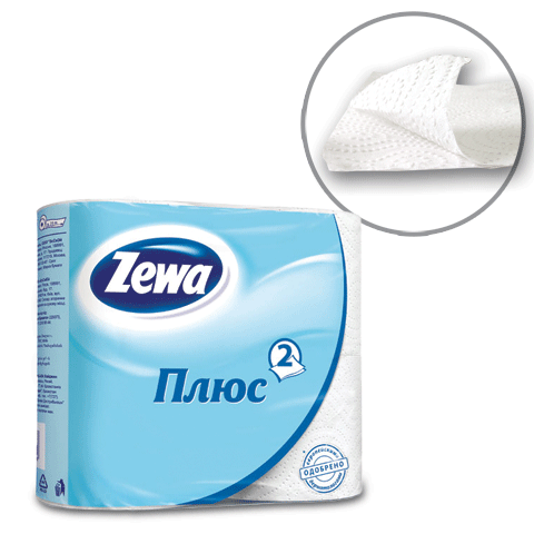 Бумага туалетная Zewa Plus, 2-слойная, спайка 4 штуки*26 м, белая 144051 (122814)