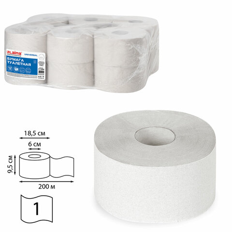 Бумага туалетная LAIMA UNIVERSAL (Система T2) 1-слойная 12 рулонов по 200 метров, цвет натуральный, 111334