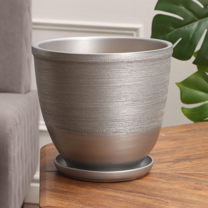 Горшок для цветов «Серебро», керамический, с поддоном, 5 л, серебристый