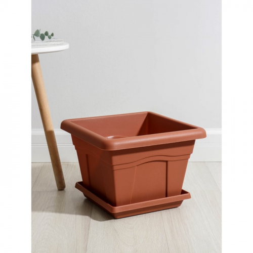 Горшок для цветов с поддоном «Квадро», 12.2 л, пластиковый, терракотовый
