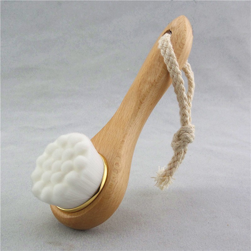 Массажная мягкая щеточка для умывания лица на деревянной основе