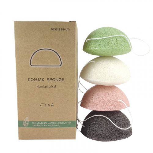 Набор спонжей конняку 4 штуки в экологичной упаковке.