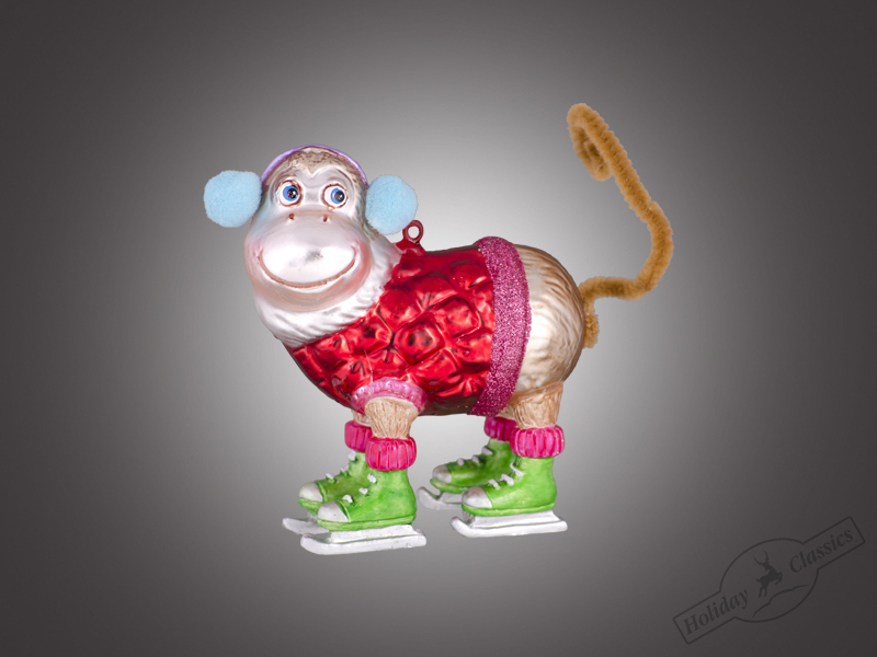 Обезьяна-фигурист в наушниках и красном свитере (стекло) П/У, 9,5х4,5х10,8 см