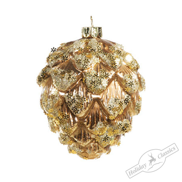 Шишка "Золотые снежинки" (стекло) 7,6х7,6х9,7 см