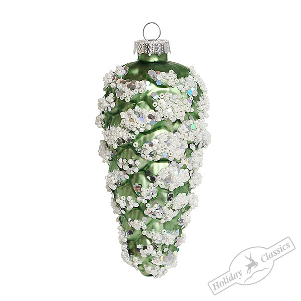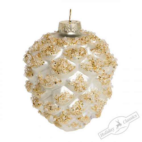 Шишка "Белый бисер" сосновая (стекло) 5х5х12,5 см