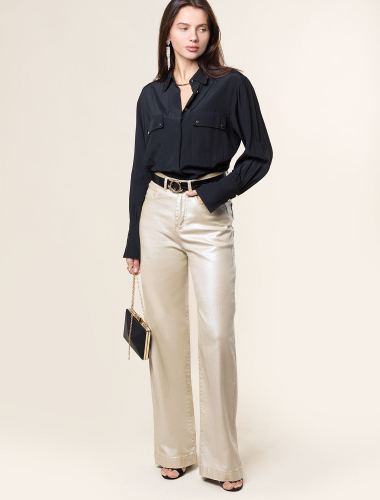Блузка из плотного полуматового сатина с удлиненным манжетом