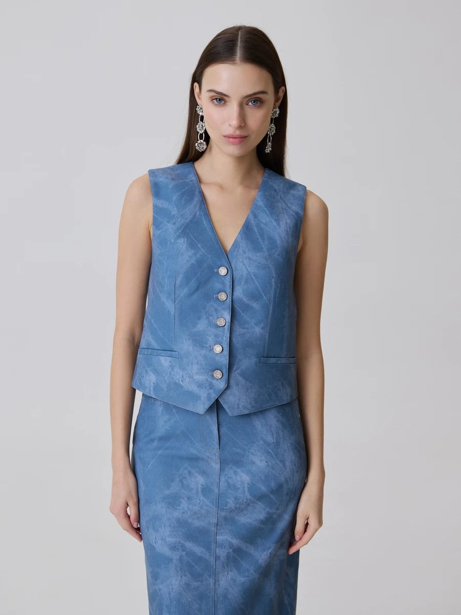 Укороченный жилет из экокожи Темно-голубой 41.008.1121.632.1