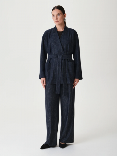 Трикотажный жакет на поясе Темно-синий 44.003.6790.525.1
