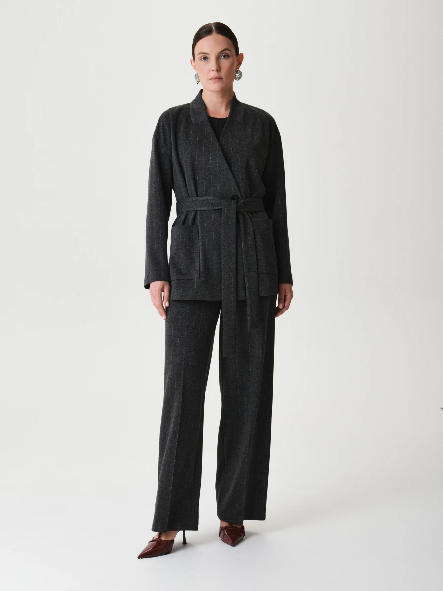 Трикотажный жакет на поясе Серый 44.003.6789.205.1