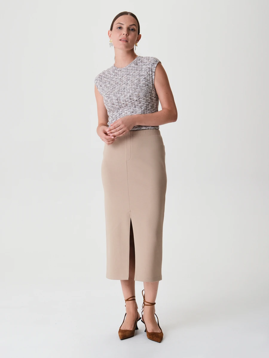 Трикотажная юбка длины миди Бежевый 34.961.6225.097.1