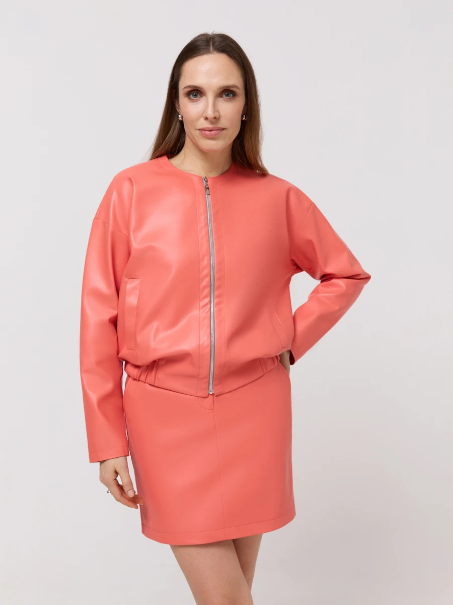 Бомбер из экокожи Коралловый 45.372.1117.062.1