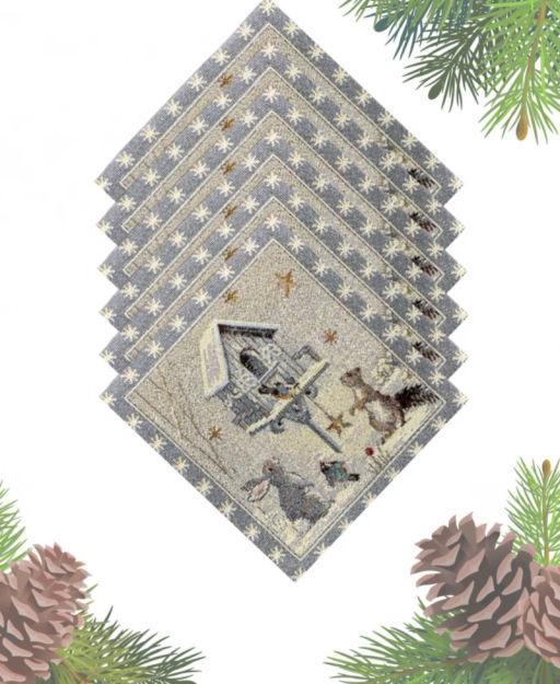 Лесные друзья у кормушки Комплект салфеток 6шт 16х16 см серебро 07418