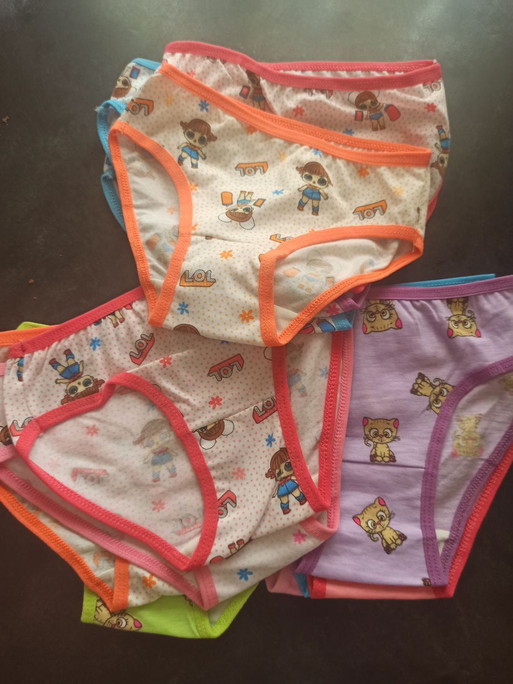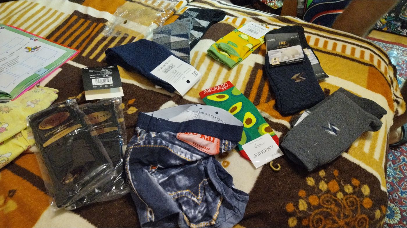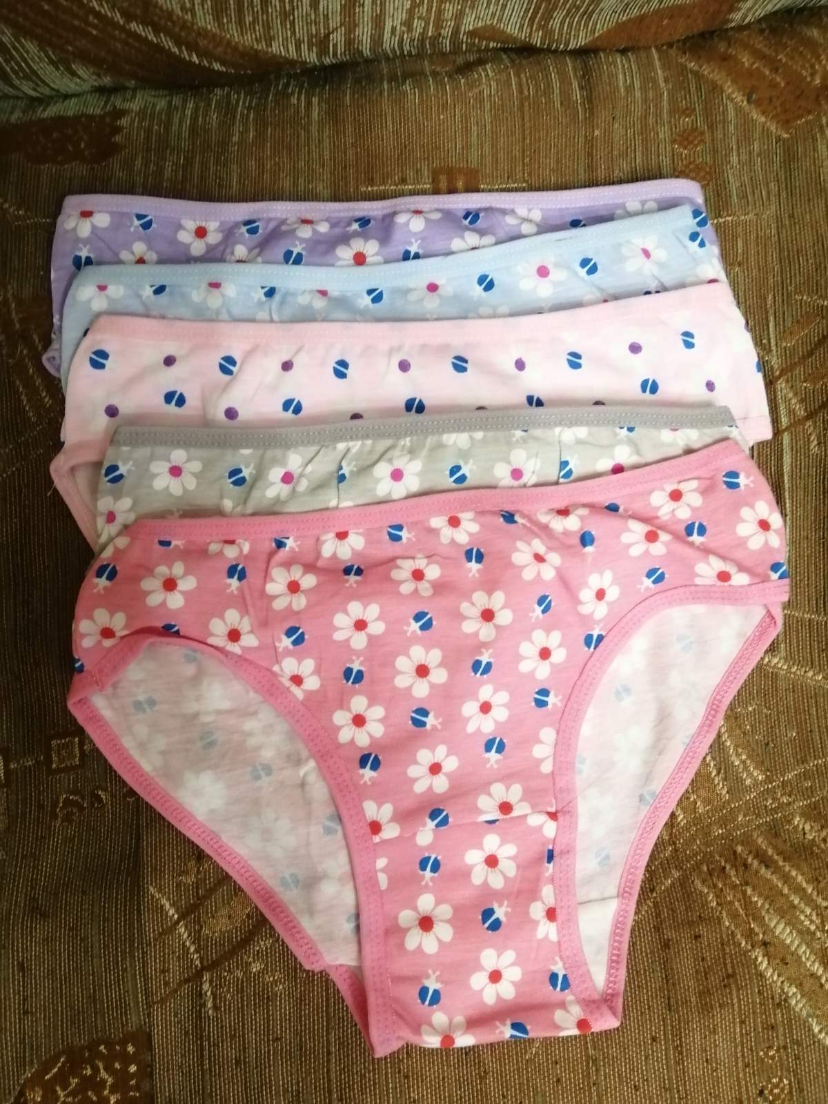 в упаковке носки по 10-12 штук, трусики по 10 штук, колготки по 6 штук.