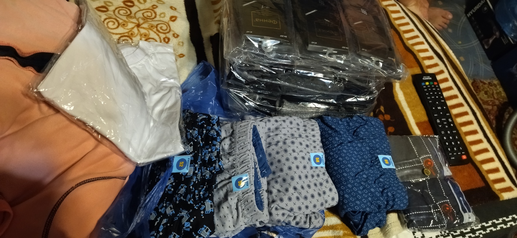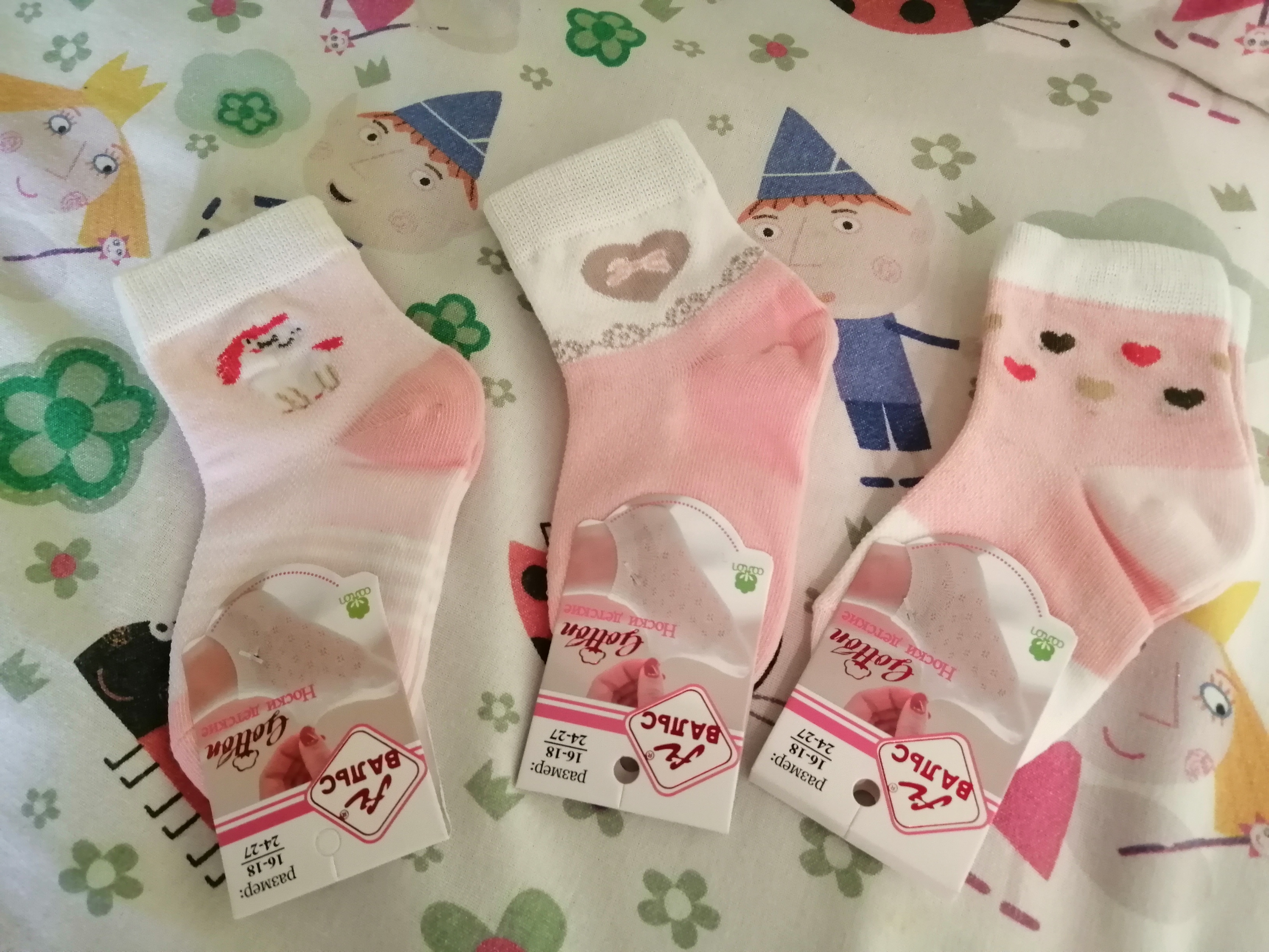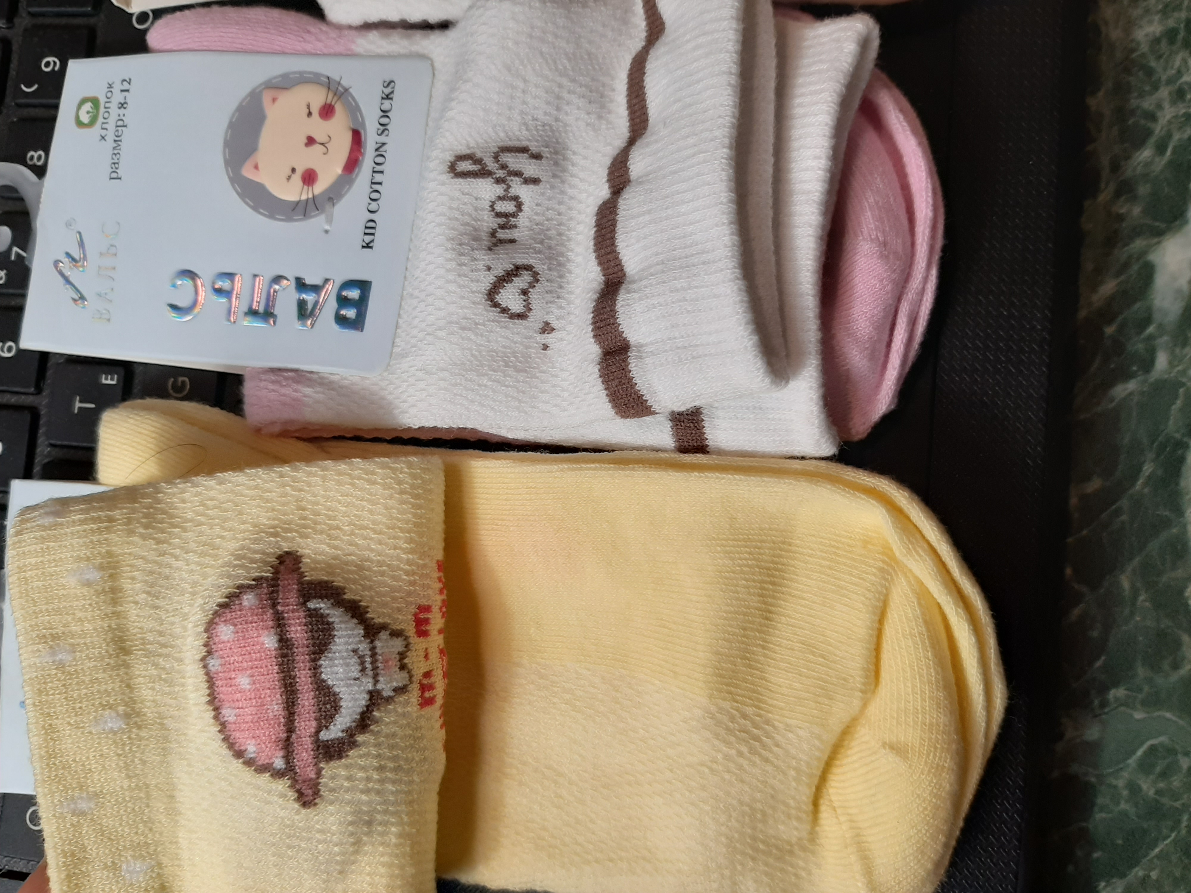 в упаковке носки по 10-12 штук, трусики по 10 штук, колготки по 6 штук.