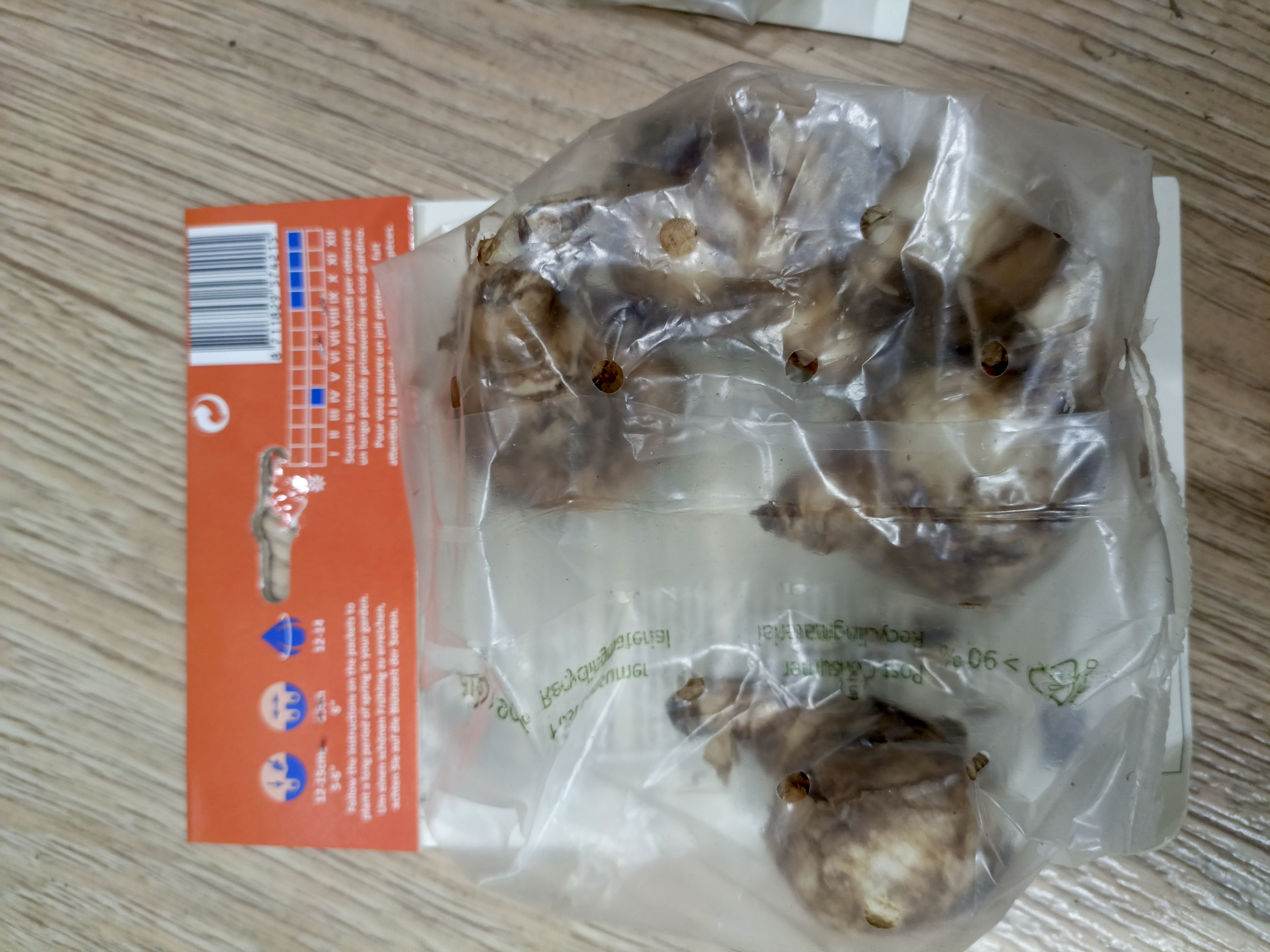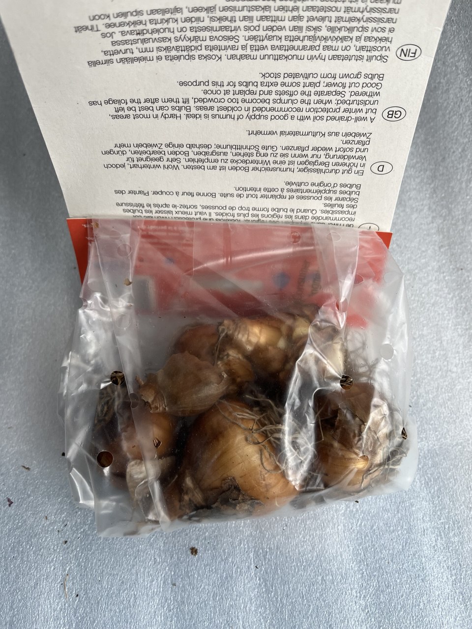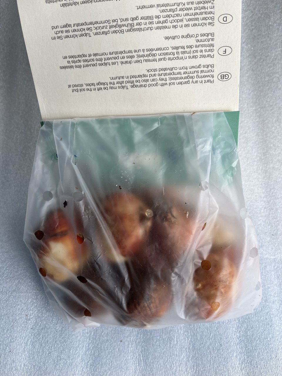 В упаковке с цветной этикеткой. Упаковки не делю. Кол-во луковиц в каждой упаковке подписано в названии к сорту. Цена за целую упаковку.