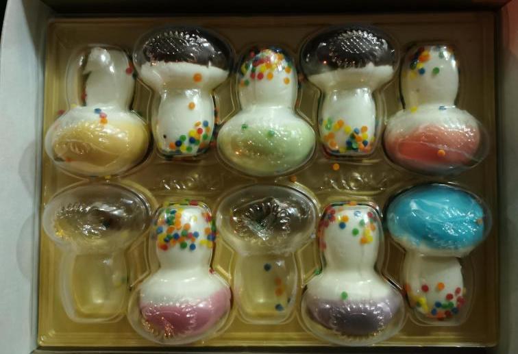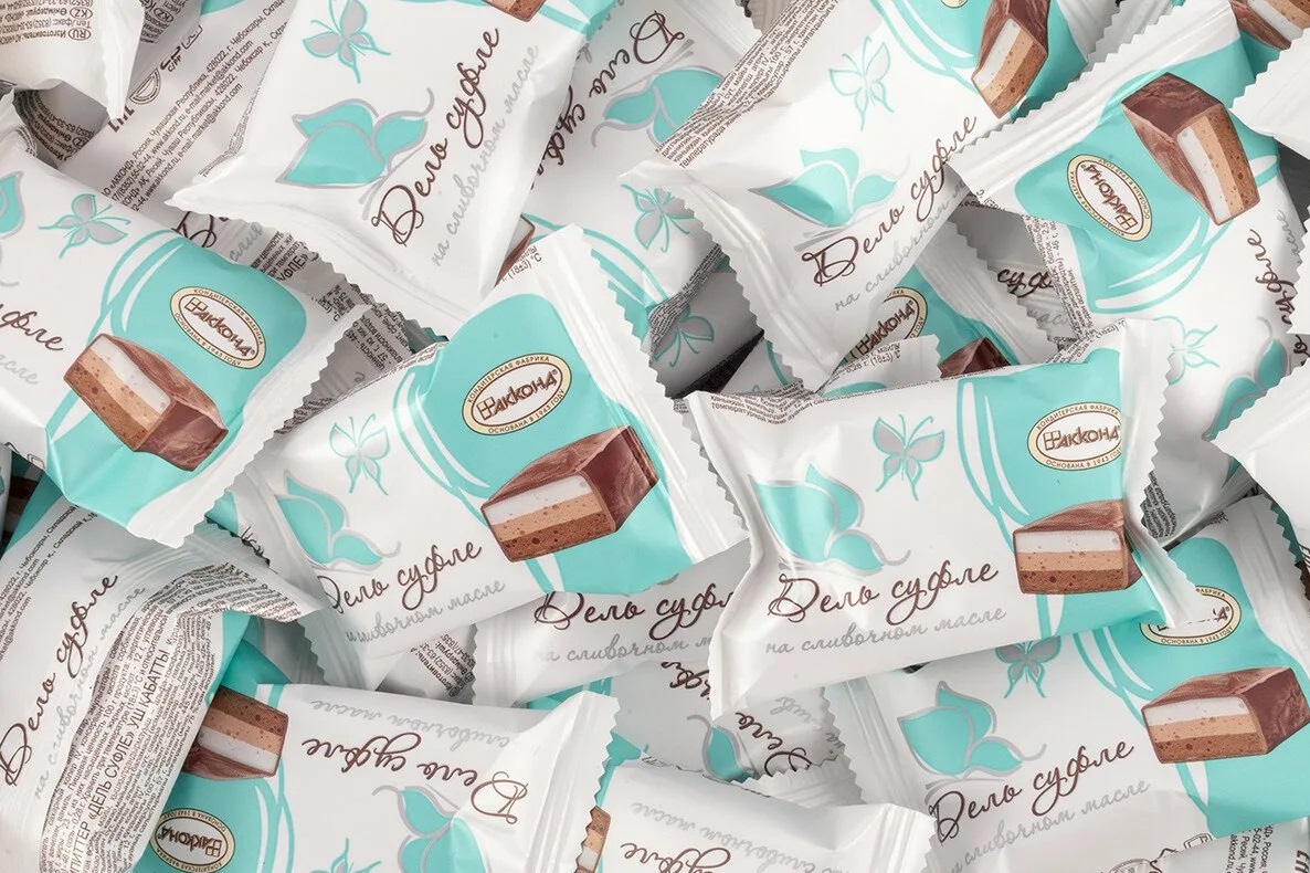 Огромный ассортимент: конфеты – оригинальные, пралиновые (в том числе двухслойные), с нугой, орехом и карамелью, с мягким грильяжем, желейно-молочные с тоффи, помадно-молочные и помадные с начинкой, суфле, жевательная карамель
